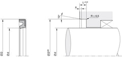 Bei Abstreifringen Profil AG wird der Außendurchmesser D mit einem geringen Übermaß gefertigt, so daß sich beim Einbau in die Ausdrehung / Bohrung DH8 ein einwandfreier Press-Sitz ergibt. Sie können von Hand oder vollautomatisch maschinell eingepresst werden. Die Abstreiflippe sollte nicht mit vorstehenden Kolbenstangenköpfen oder deren Anschlussteilen in Berührung kommen.